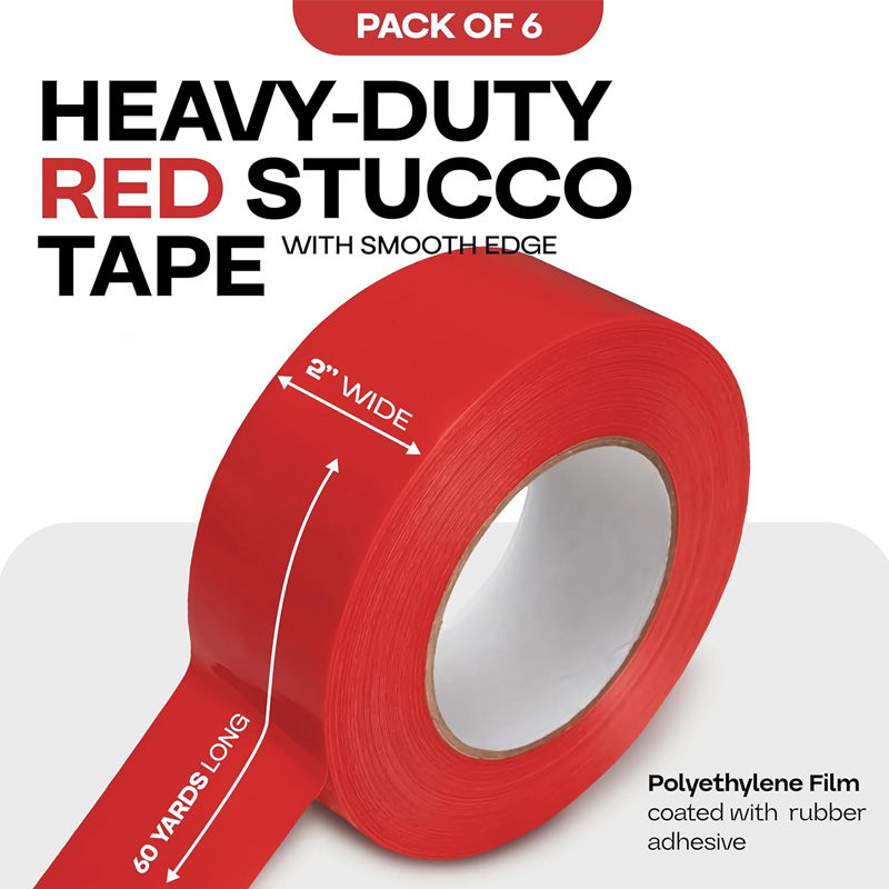 This tape effectively protects windows, doors, frames, and other surfaces from stucco, plaster, paint splatter, moisture, and dust during construction work. Despite its strong adhesion, PE Stucco Tape can be cleanly removed after use without leaving adhesive residue or causing surface damage.